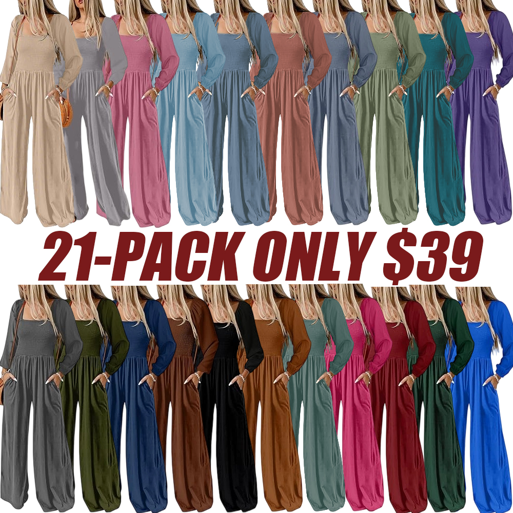 Women's Casual LooseHoliday HaulOveralls Jumpsuits One Piece Long Sleeve WideLeg Long Pant Rompers With Pockets$39.00 USDDescribe your product