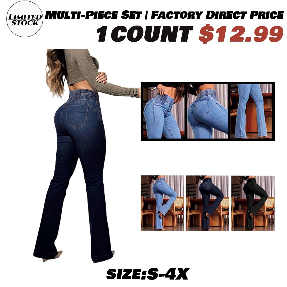 【Fallfreshness】2025 Elastic Waist High Waist Stretch Tights Slightly Flared Hip Lift Denim Trousers flared jeans Wide Leg Jeans