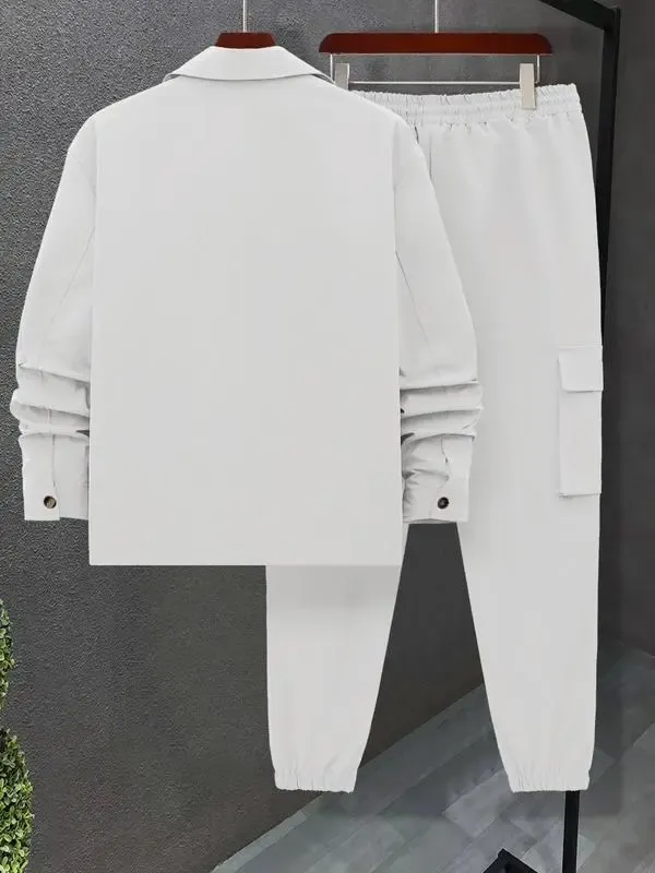 Men's Solid Color Pocket Button Front Jackets & Pants Two-Piece Set