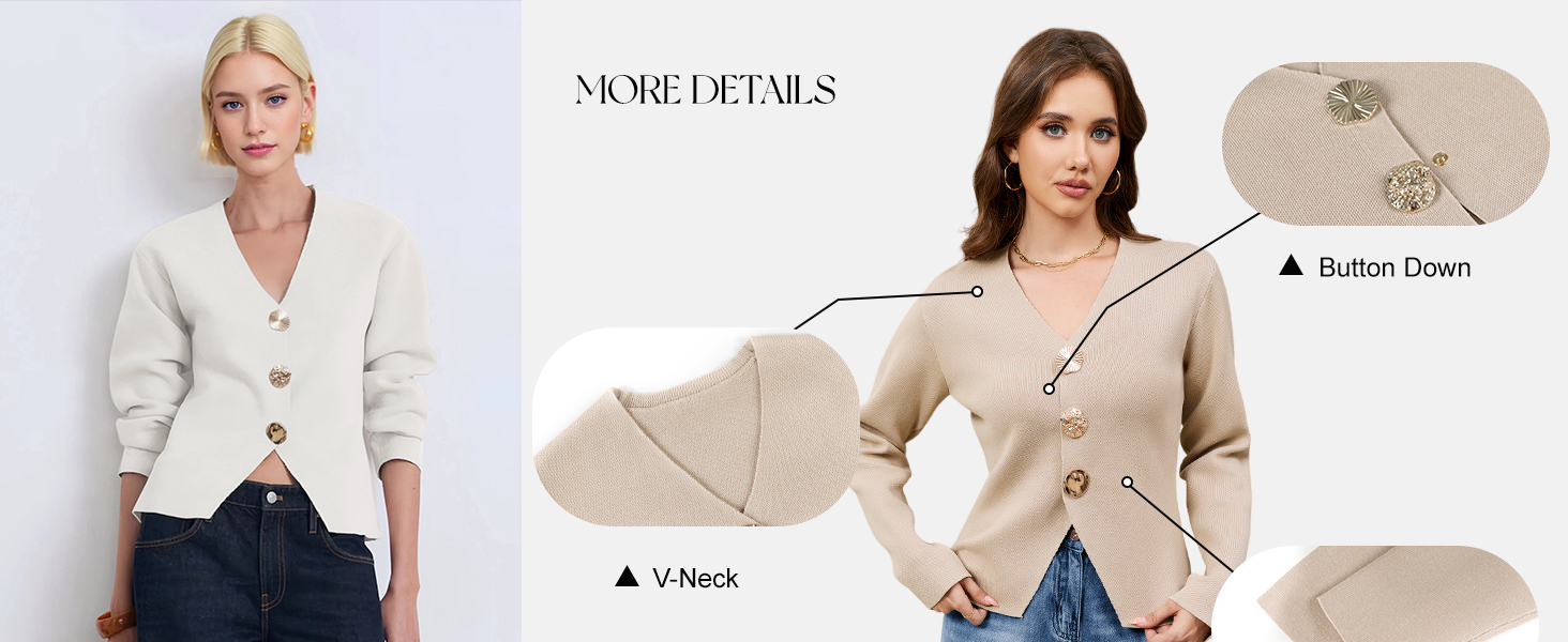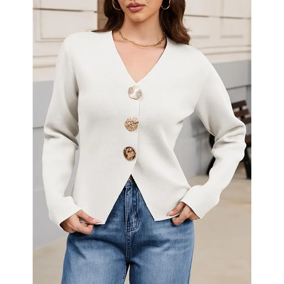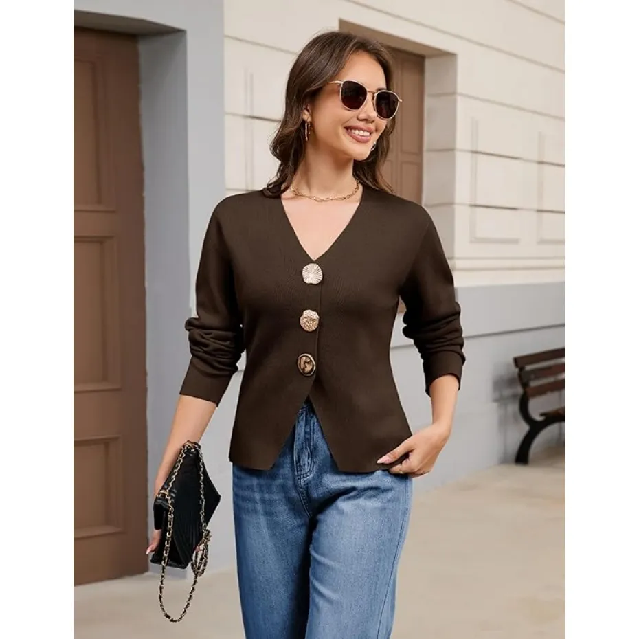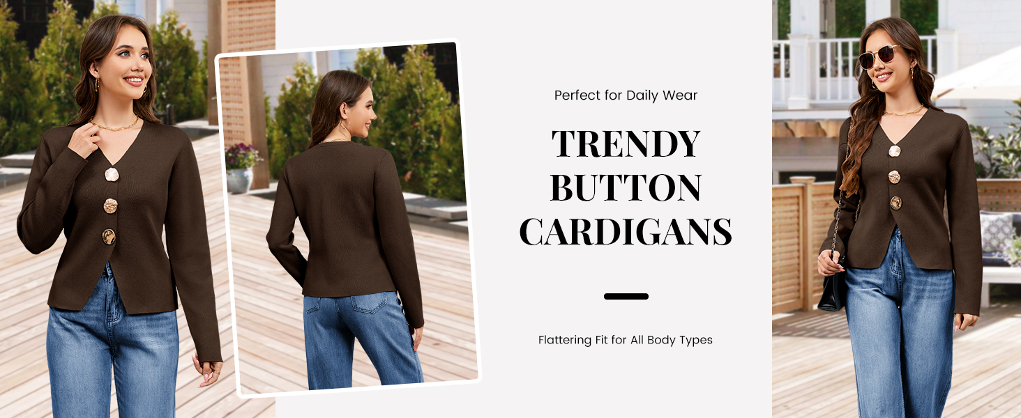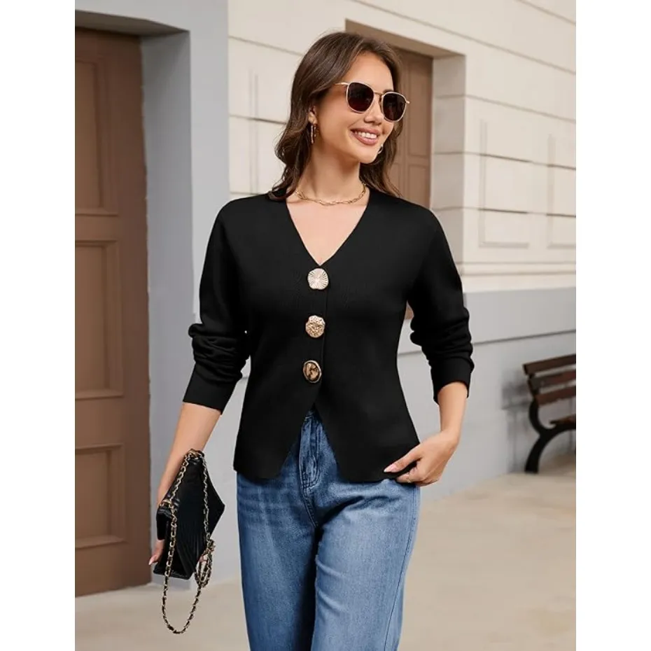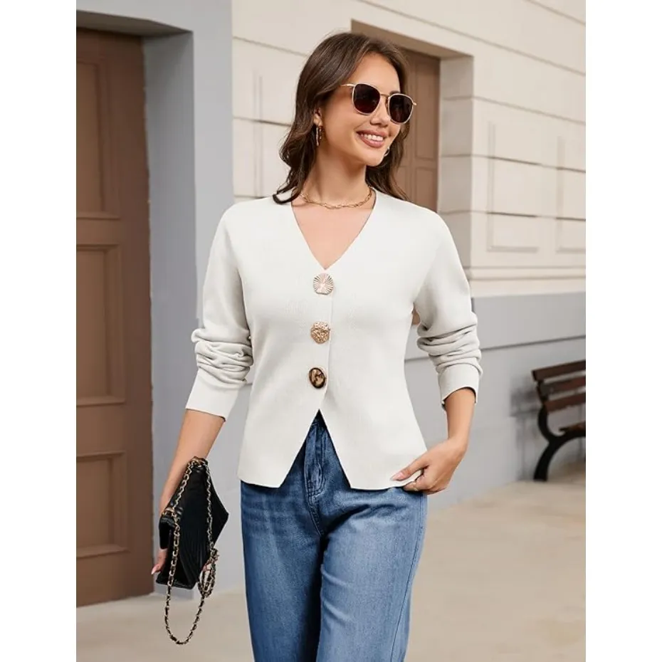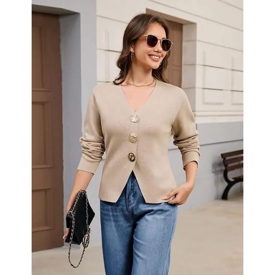 Features: The solid color knitted cardigan for women features a timeless V-neck, long sleeves, and three jewel metal buttons for a classic, elegant aesthetic