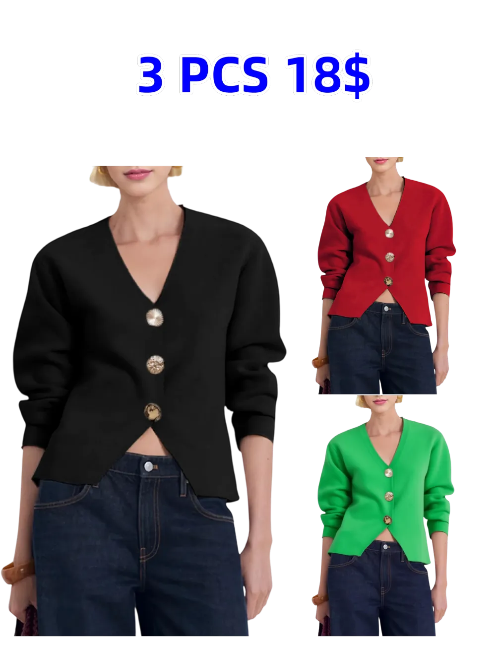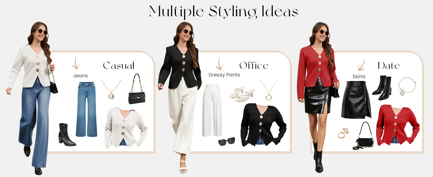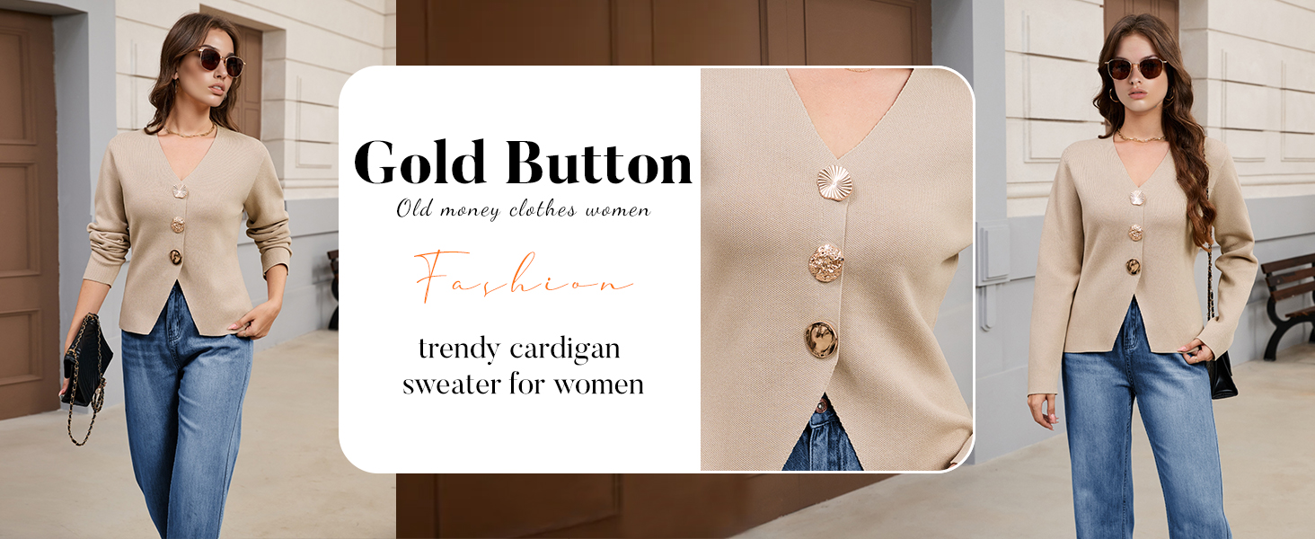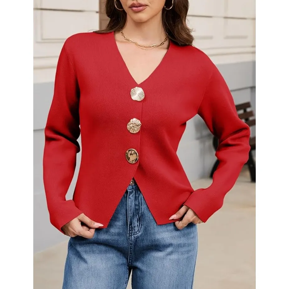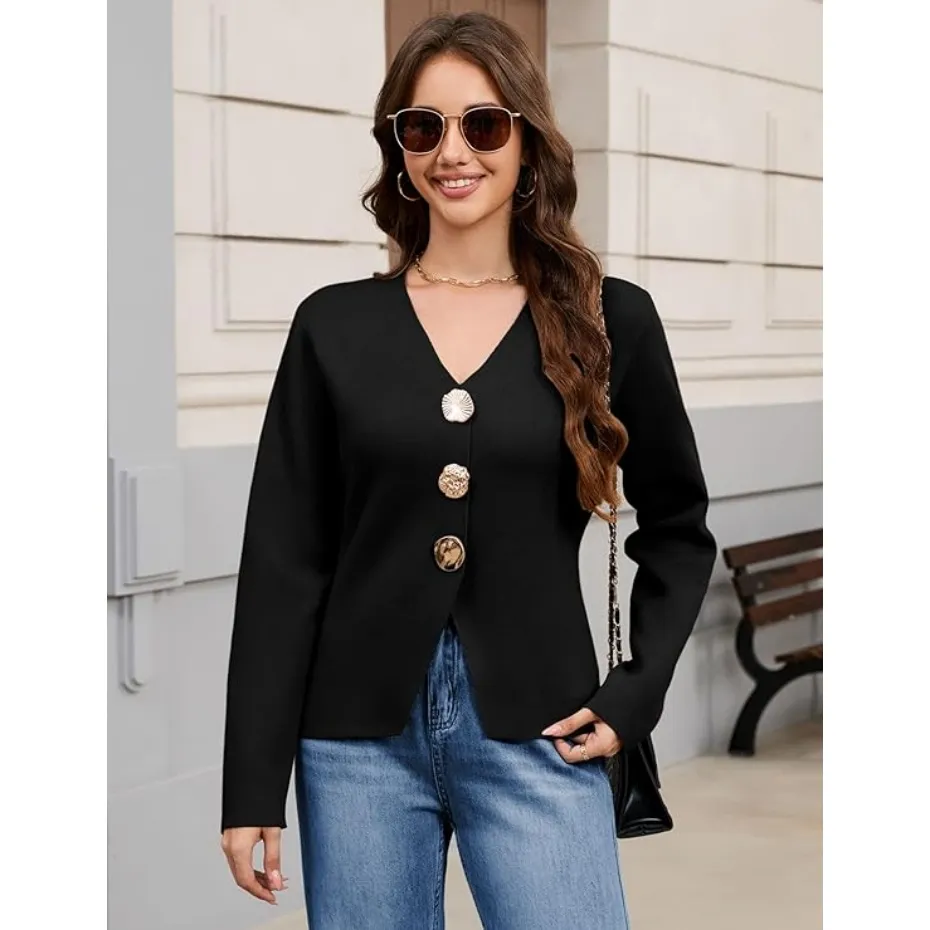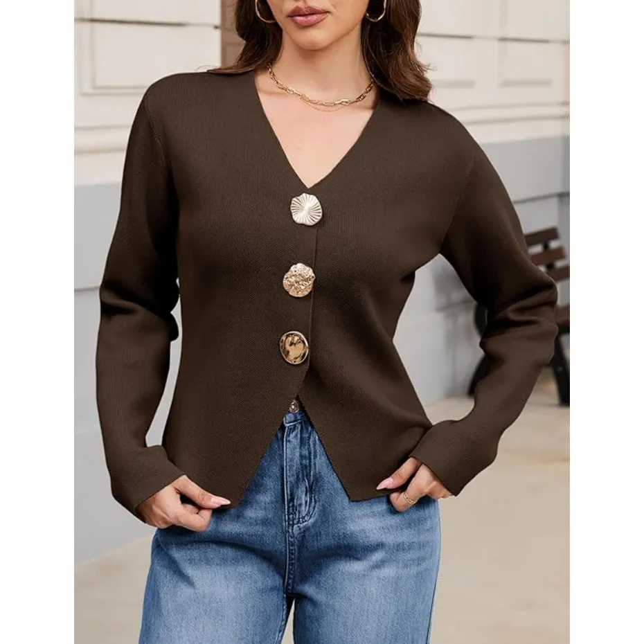 Features: The solid color knitted cardigan for women features a timeless V-neck, long sleeves, and three jewel metal buttons for a classic, elegant aesthetic