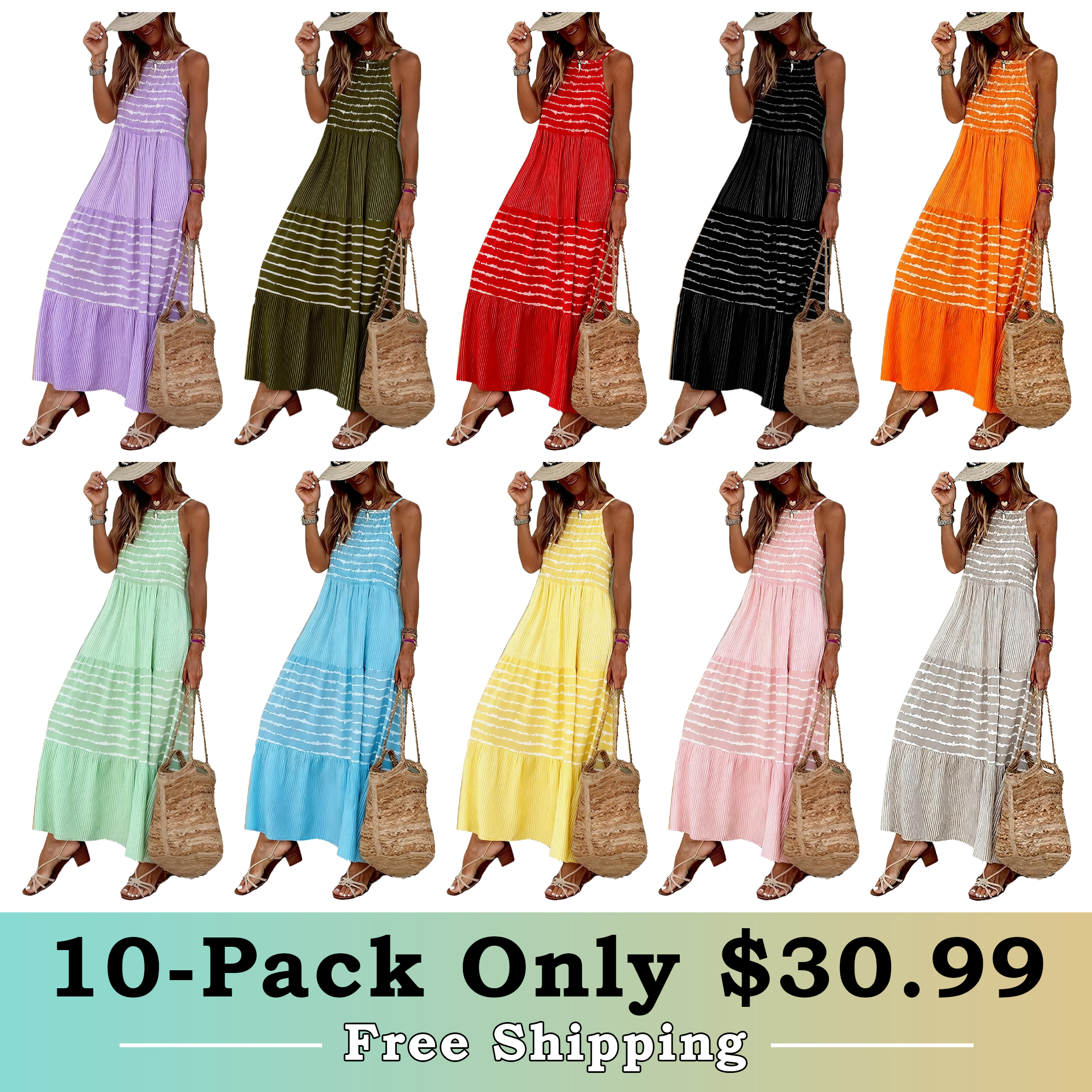 • Fashion design: maxi dresses, sleeveless, wrap V-neck, boho, elastic waist, pleated, lace