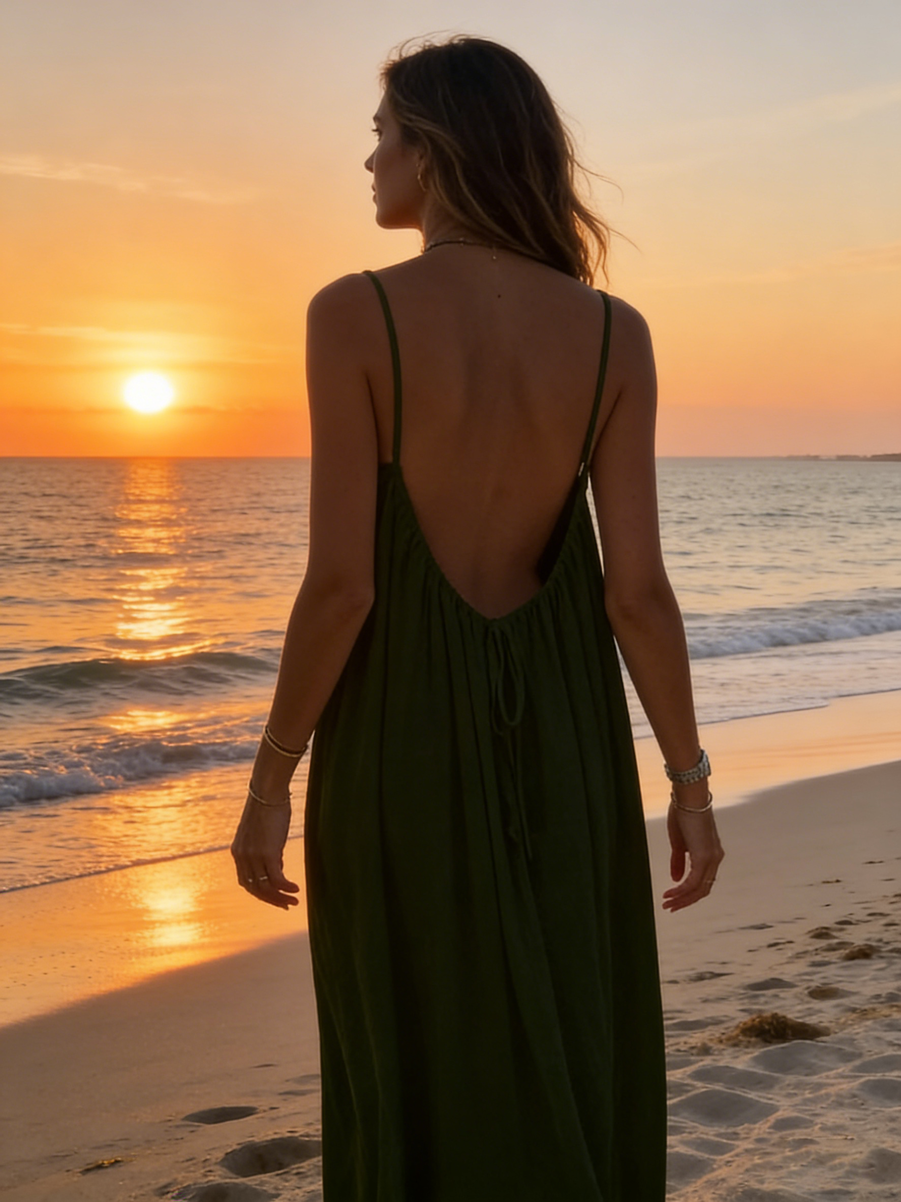 Style Sleeveless cami maxi dress, backless (adjustable tie)