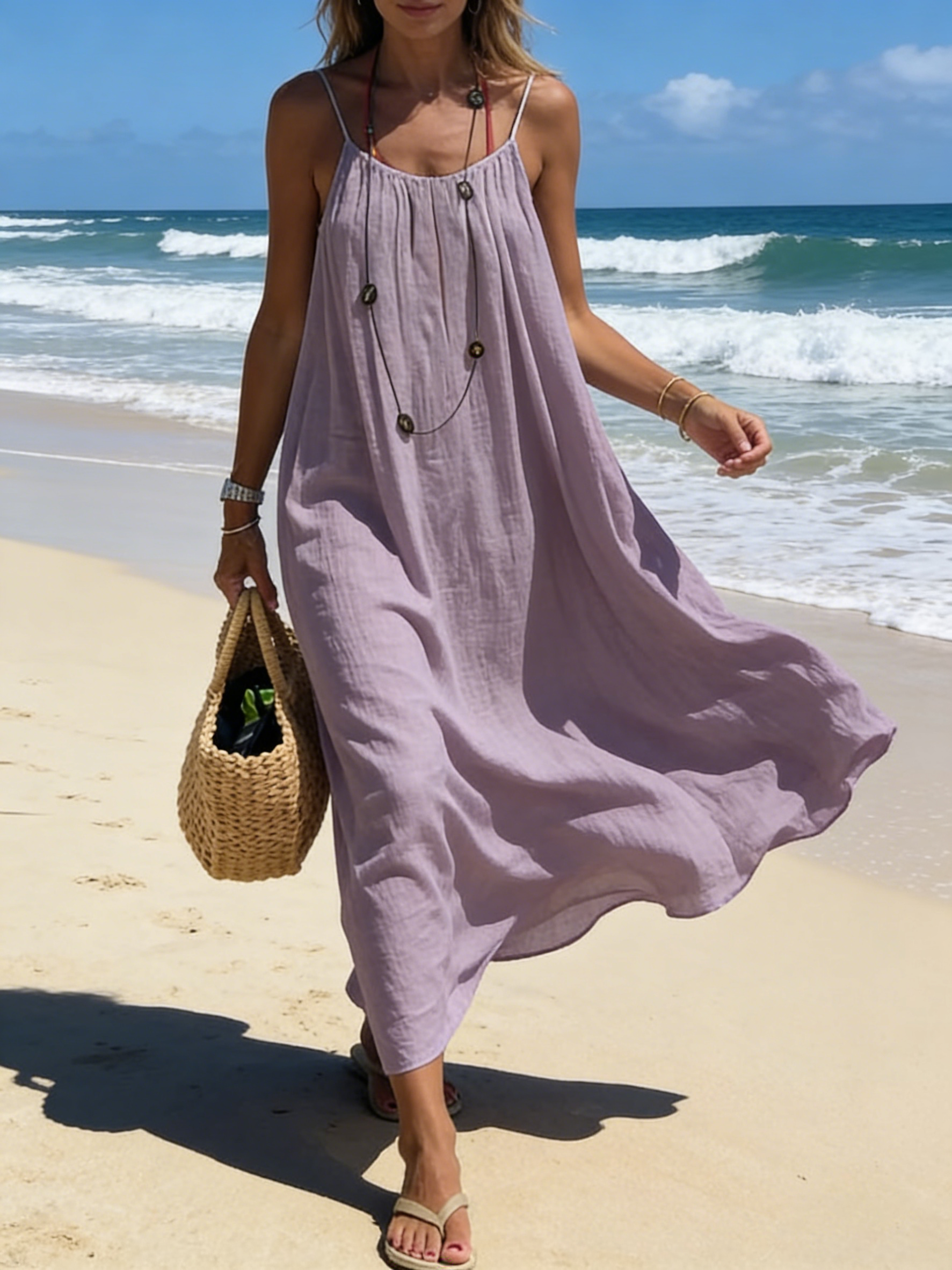 Women's Solid Color Cami Maxi Dress: Summer Elegance & Cozy Lounge Wear