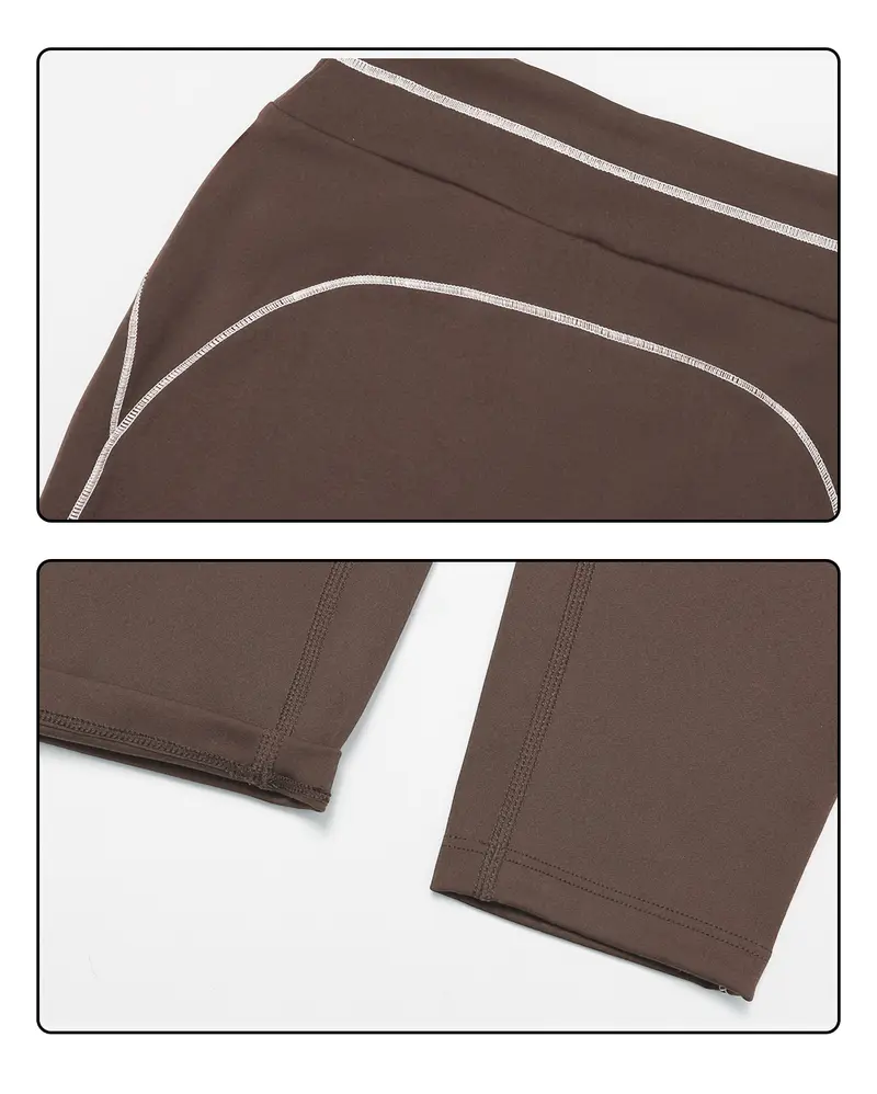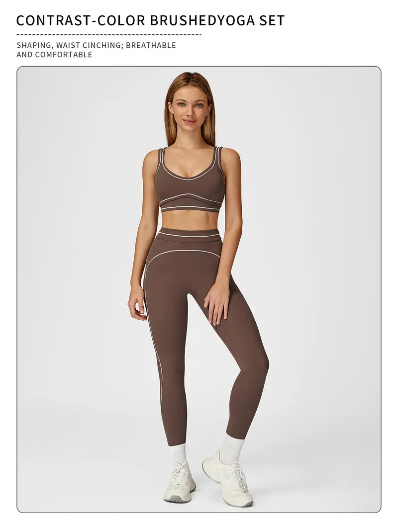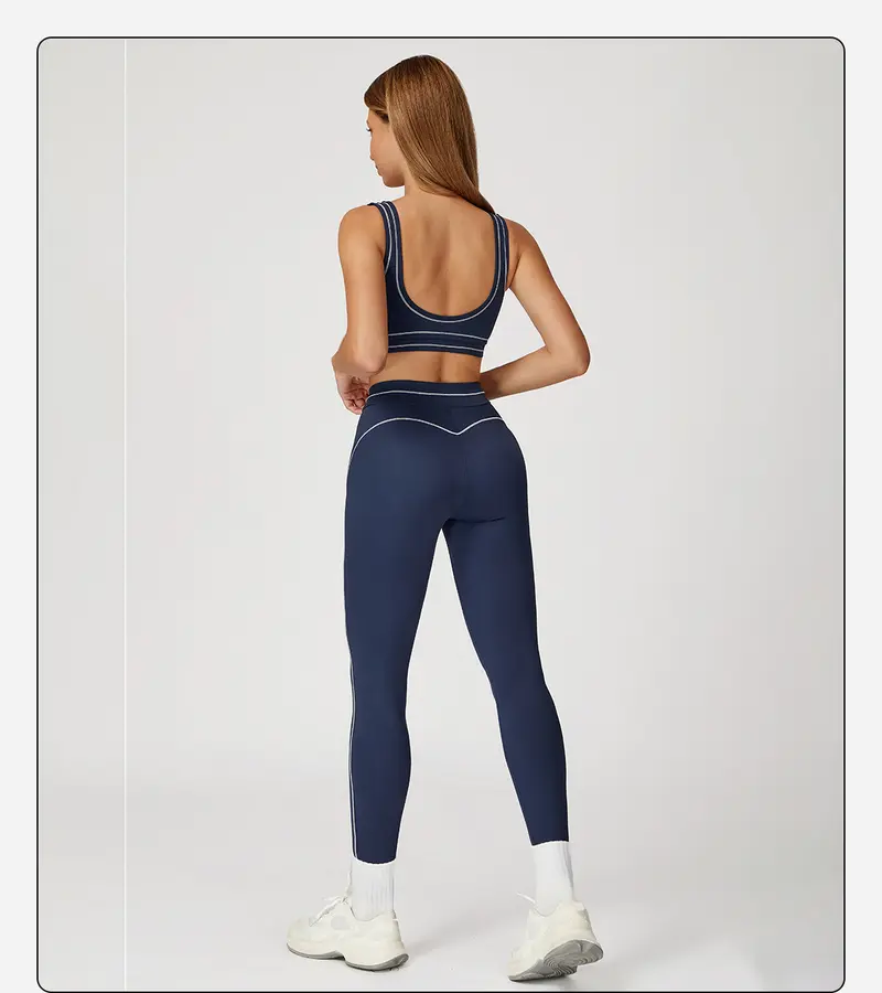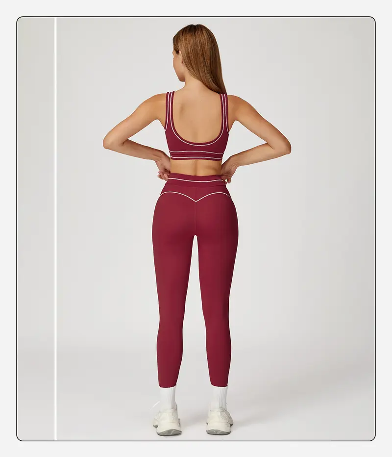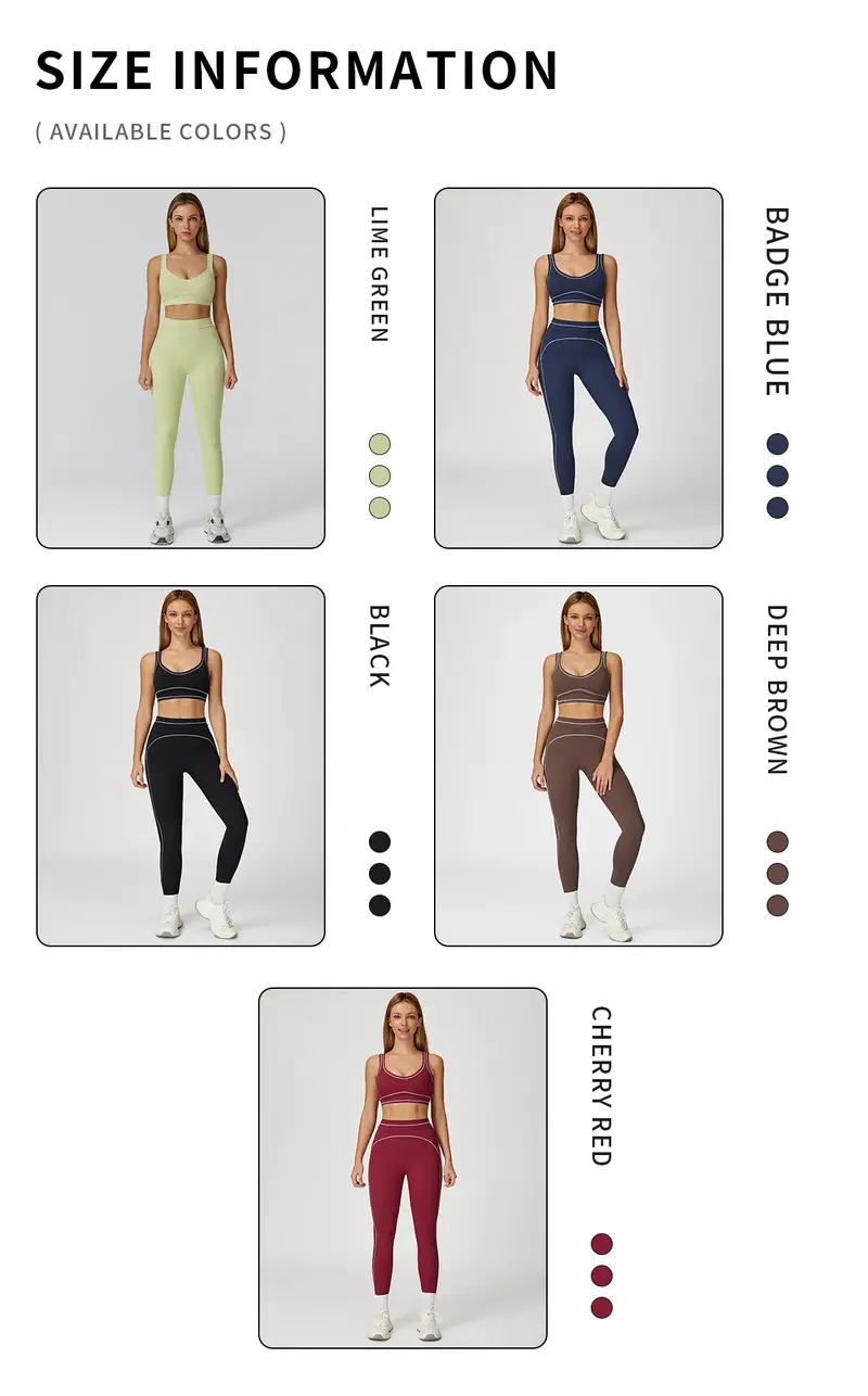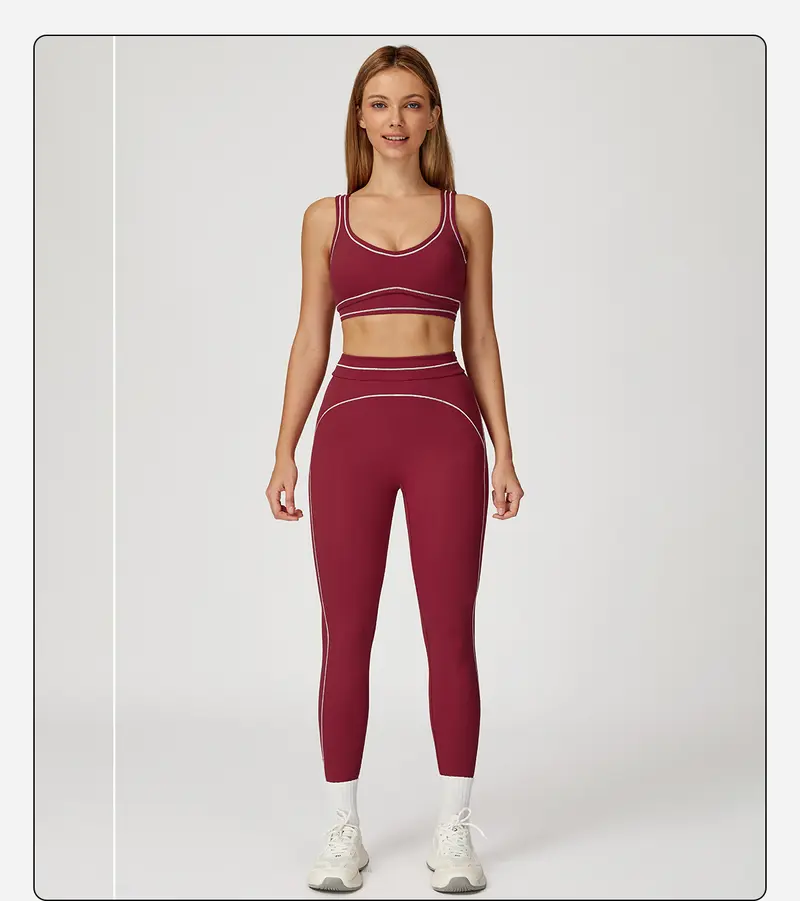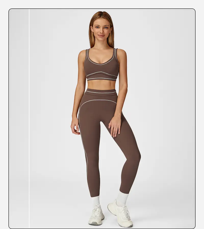 Contrast Stitching: Simple white piping details (bra neckline/straps and leggings sides) add a touch of flowing lines to the rich base color.