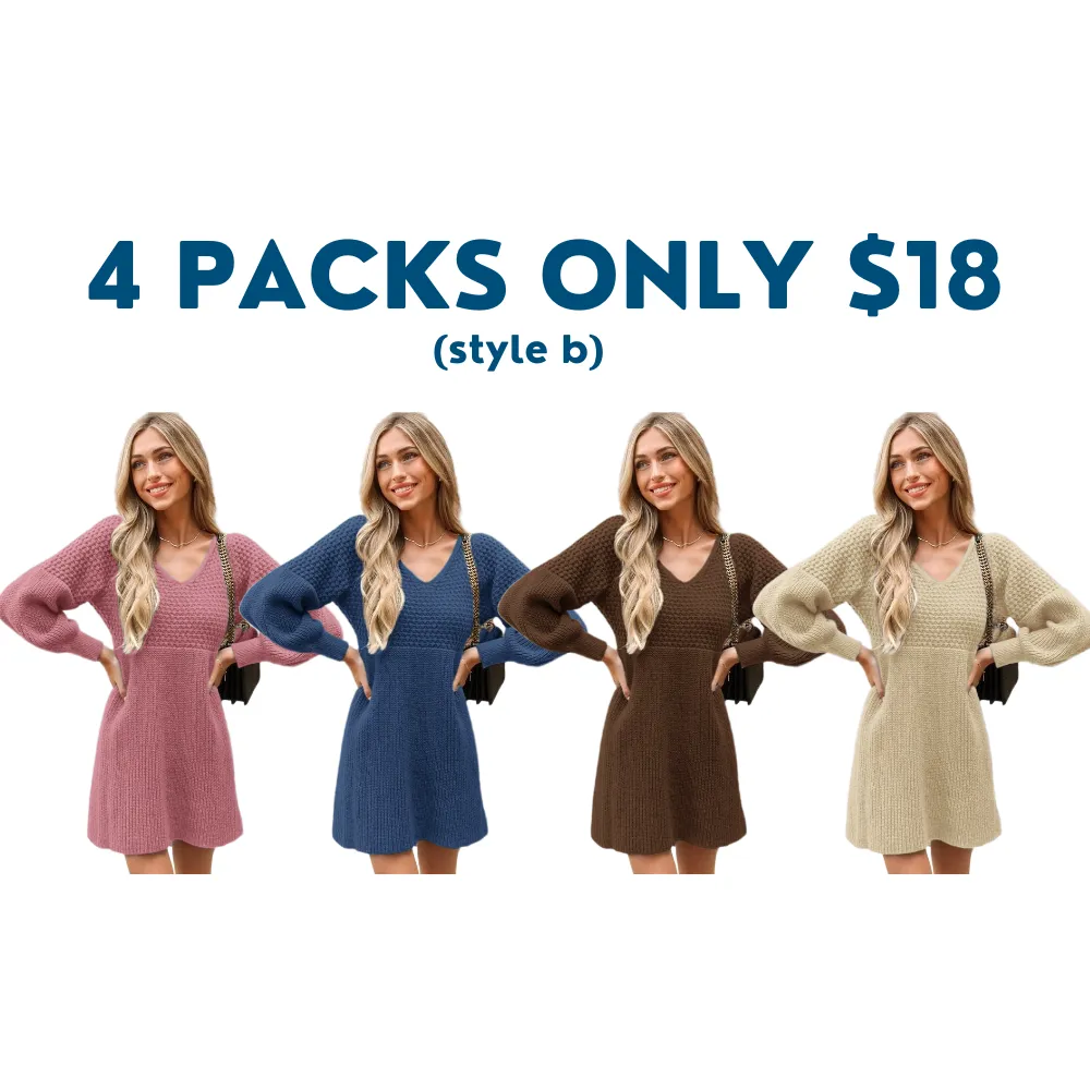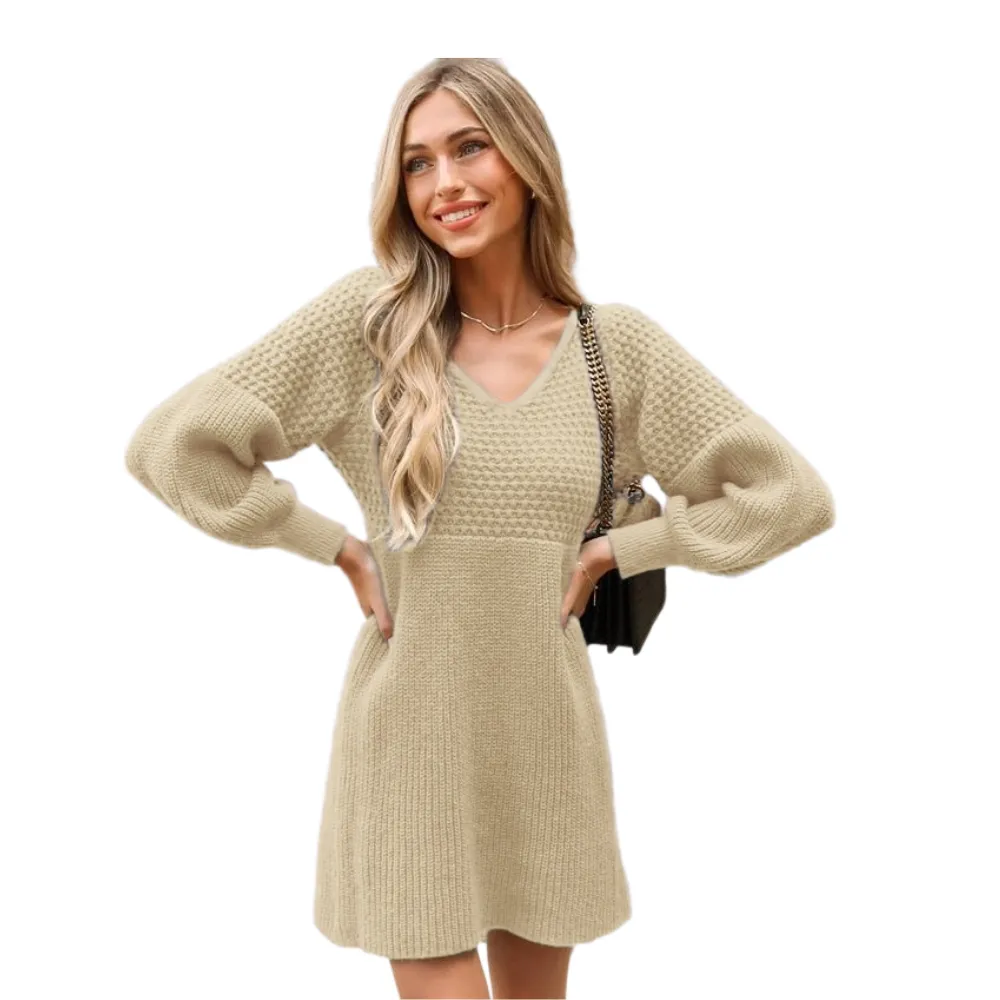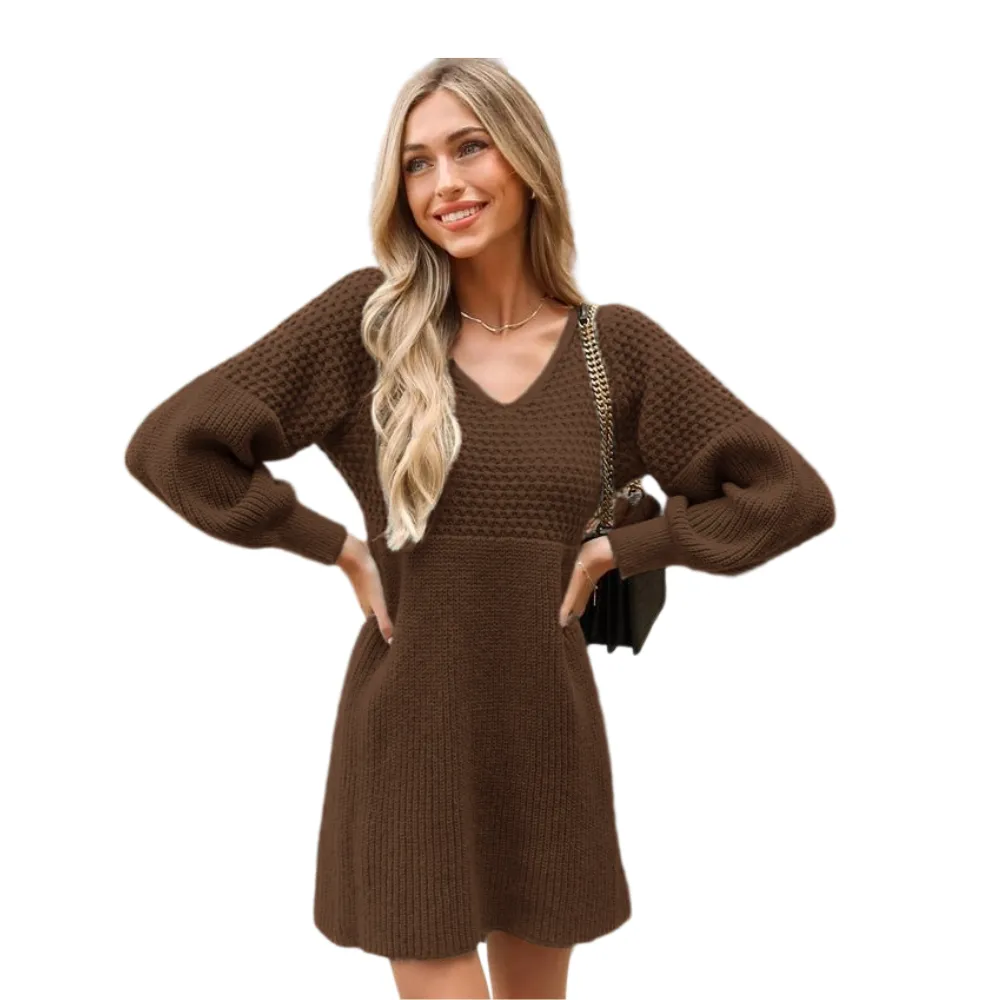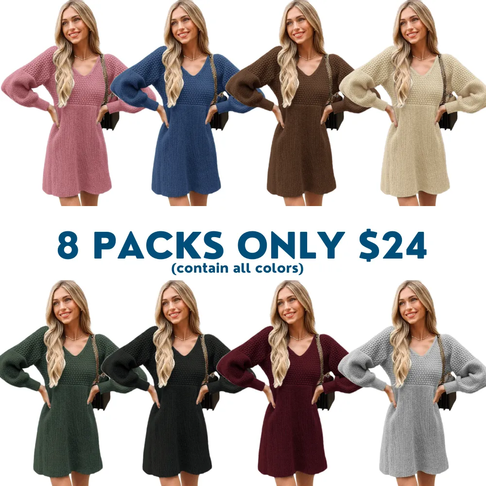 Step into sweet style with our Honeycomb Knit V-Neck Mini Sweater Dress!