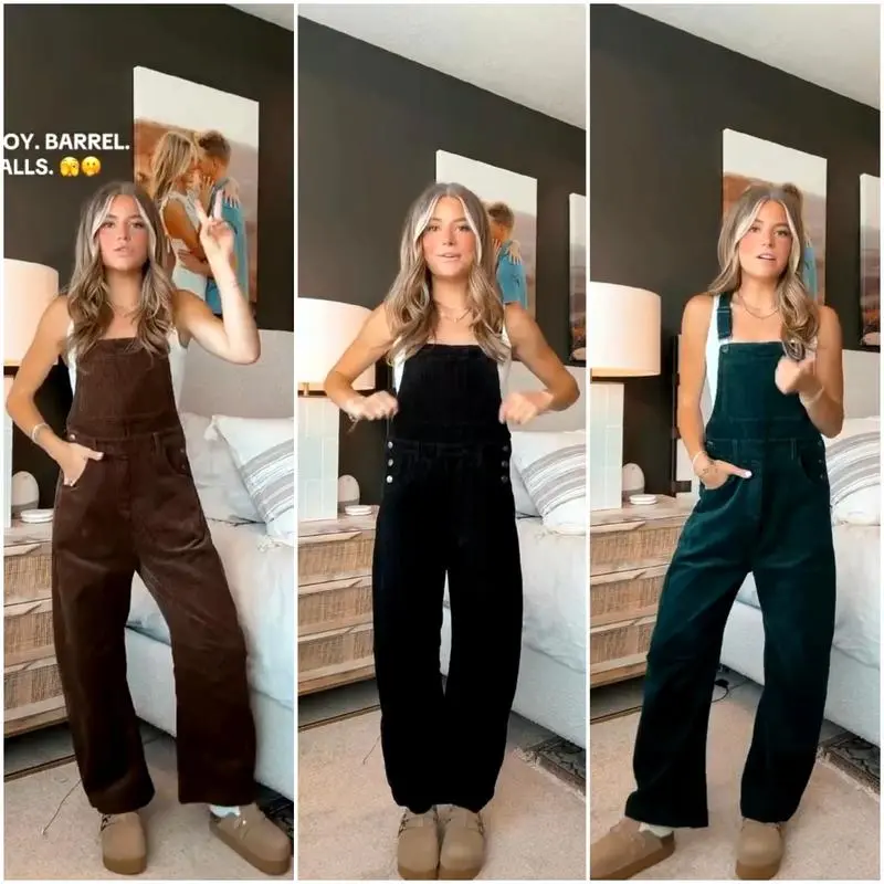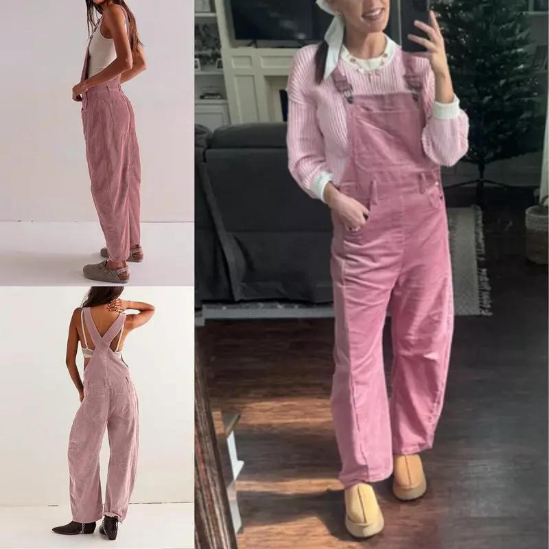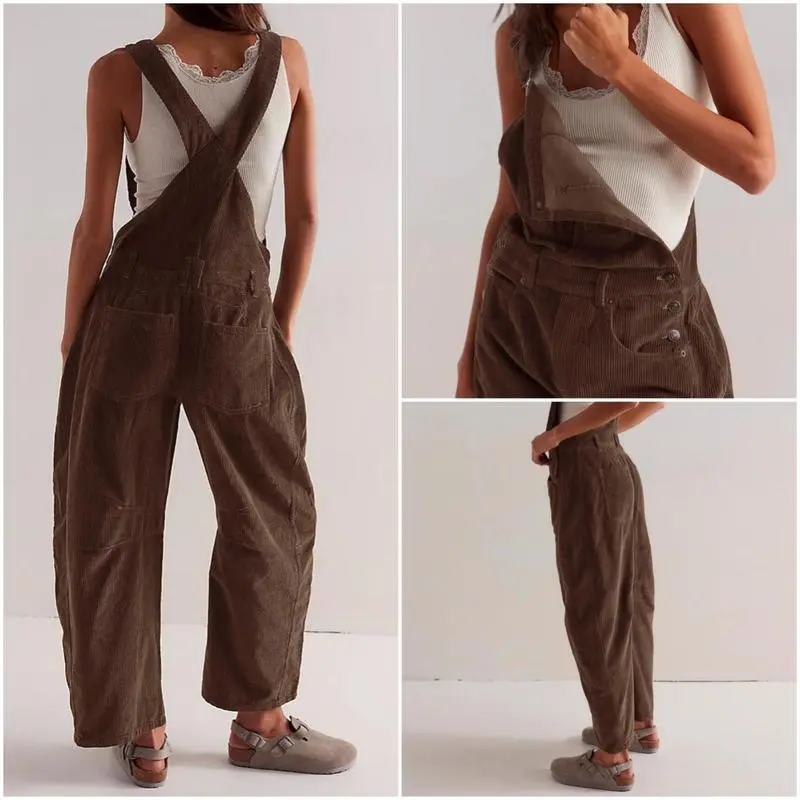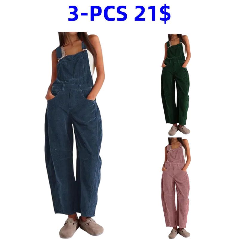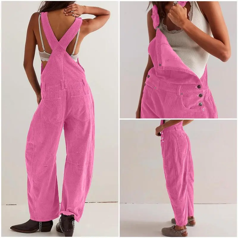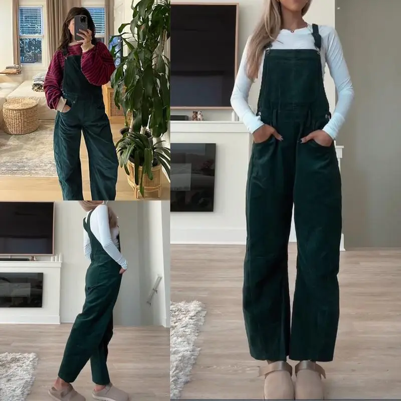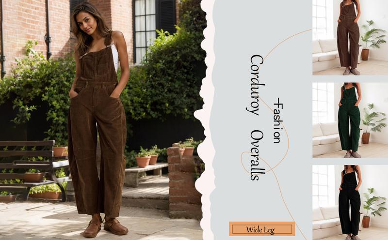 Women's Corduroy Overalls with Pockets & Wide Leg Pants