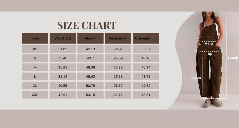 ·Design features:Features with front bib pocket, tapered knee design, adjustable brace straps, side button detailing, soft cord fabrication,a crossover wide V-neck back, pockets, and a waist design that complements various styles