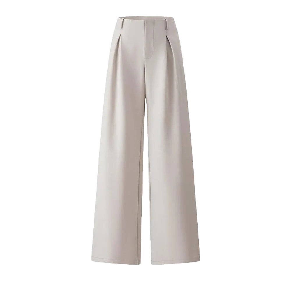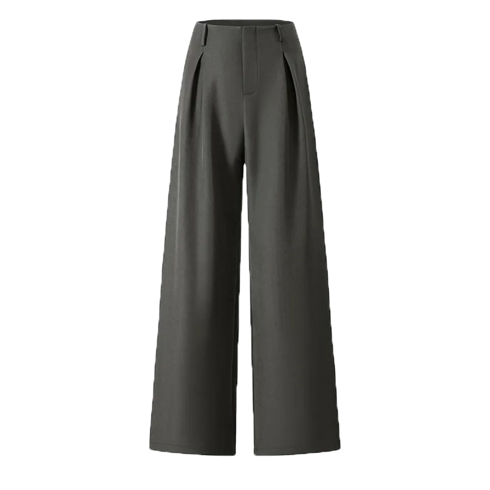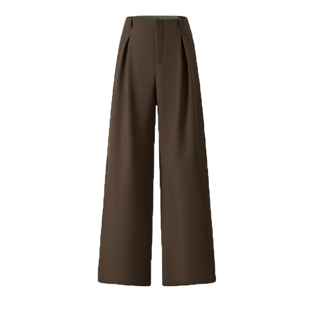 【Plicated Detail】: Featuring unique pleats, these trousers create a refined silhouette, setting them apart from standard wide-leg offerings.